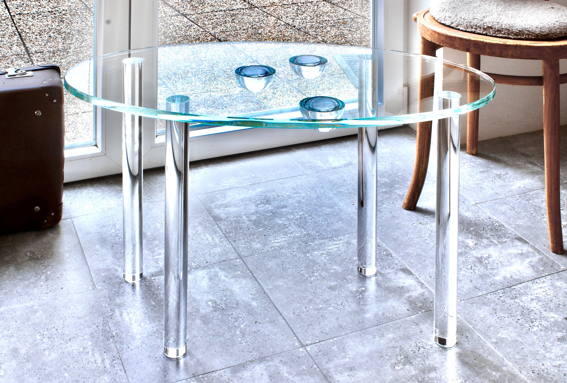 Díky úplné absenci neprůhledných materiálů a konstrukcí působí stolek téměř beztížně. Svou plnou transparentností překračuje hranice hmotného. Prostor tak opticky nezmenší jako neprůhledné kusy nábytku a dokáže tím vnést do místnosti pocit lehkosti a vzdušnosti.